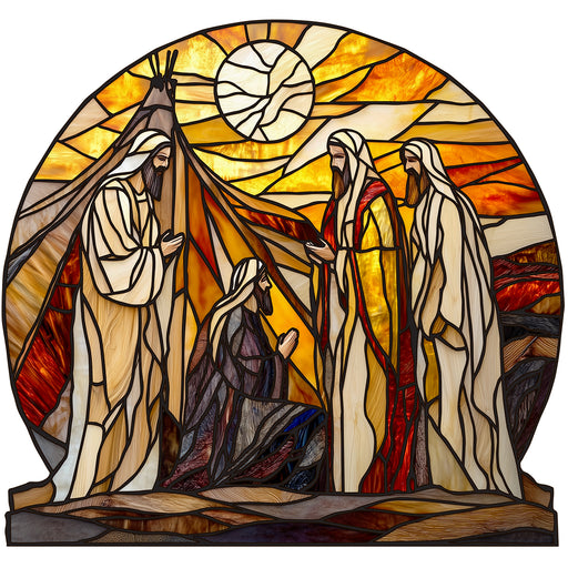 Bring the sacred story of hospitality and promise into your home. This stunning piece of wood wall art captures the profound moment recorded in Gen...